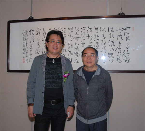 公司董事長張偉宗與朵云軒字畫鑒定專家陳勉合影