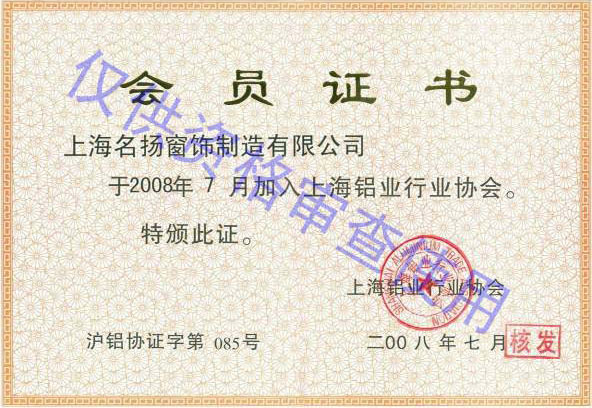上海鋁業(yè)行業(yè)協(xié)會(huì)會(huì)員證書(shū)